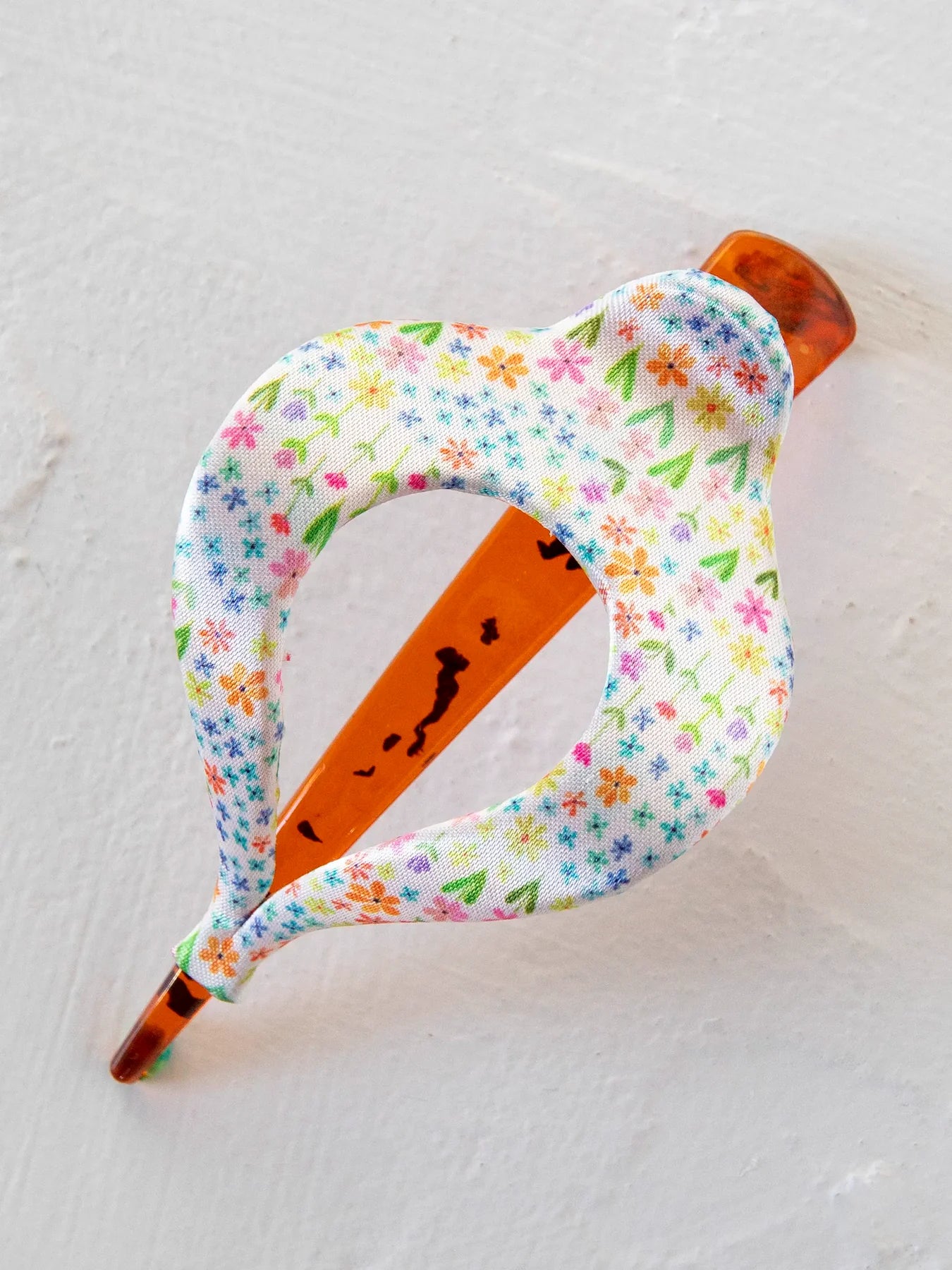 • Tortoise shell base wrapped in printed fabric