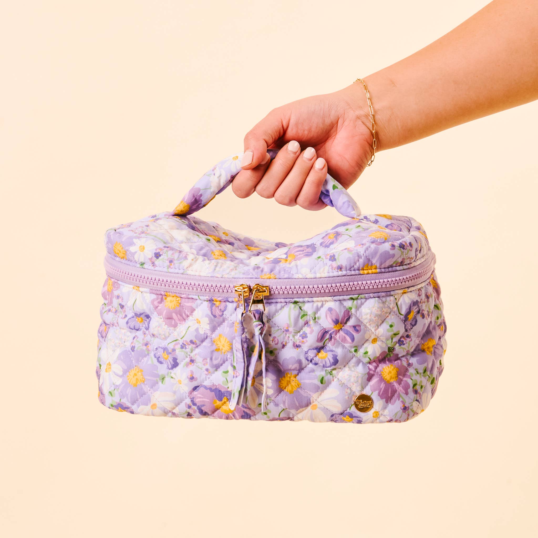 Simplify your routine in style with the Glam & Go Quilted Cosmetic Bag. Made from ultra-soft quilted fabric and finished with an all-around gold double zipper, this beauty bag was made to move with you. The sturdy top handle makes it easy to grab and go, while the spacious interior fits every step of your routine—no matter where you're headed.