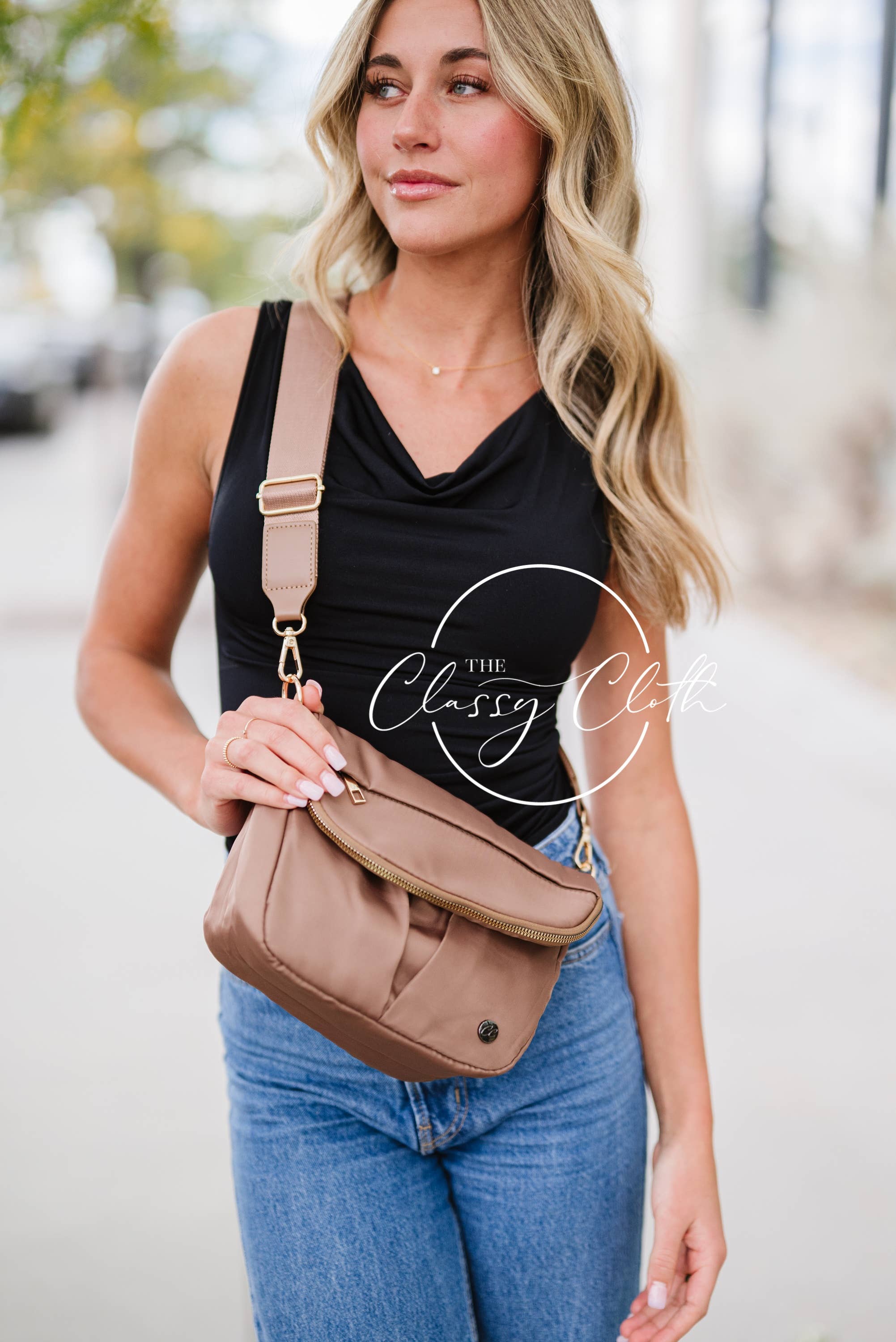 The warm mocha colorway makes this crossbody a perfect choice for fall 2025 styling, back-to-school routines, game days, and holiday gifting. Wear it crossbody or around the waist — a versatile staple that moves seamlessly from errands to evenings out.