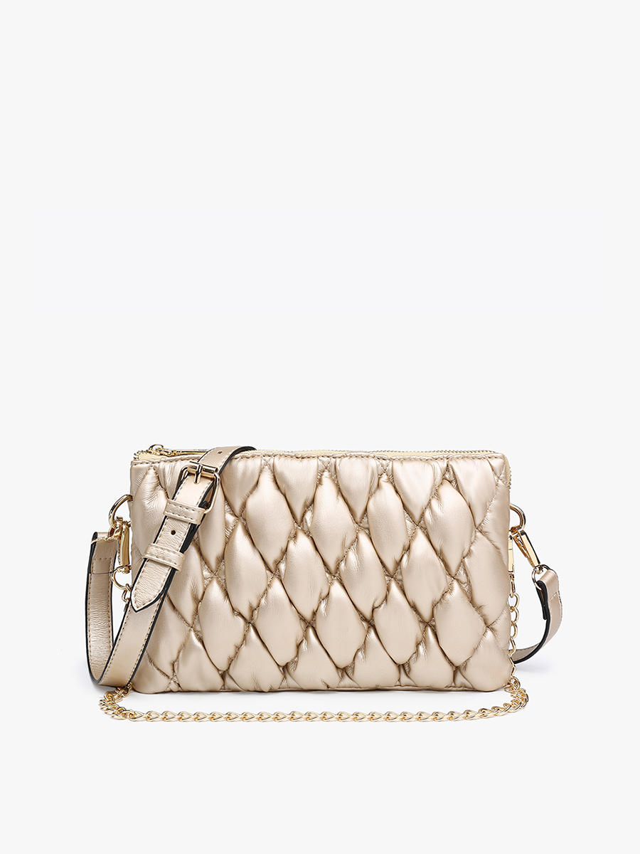 Izzy Puffer Quilted Crossbody with Chain – Trendy 3-Compartment Bag