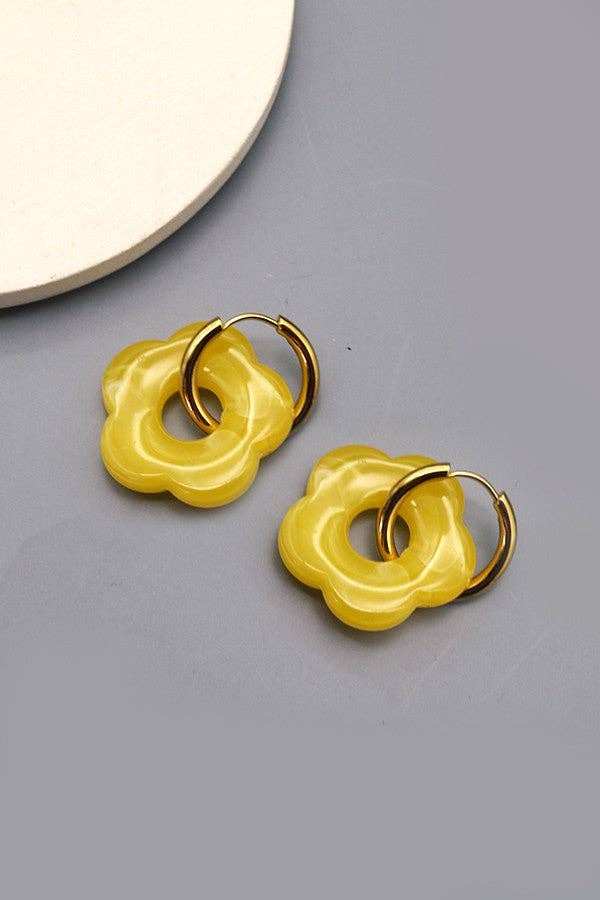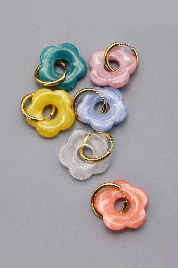 Flower Charm Huggie Hoop Earrings – Lightweight Gold Dangle