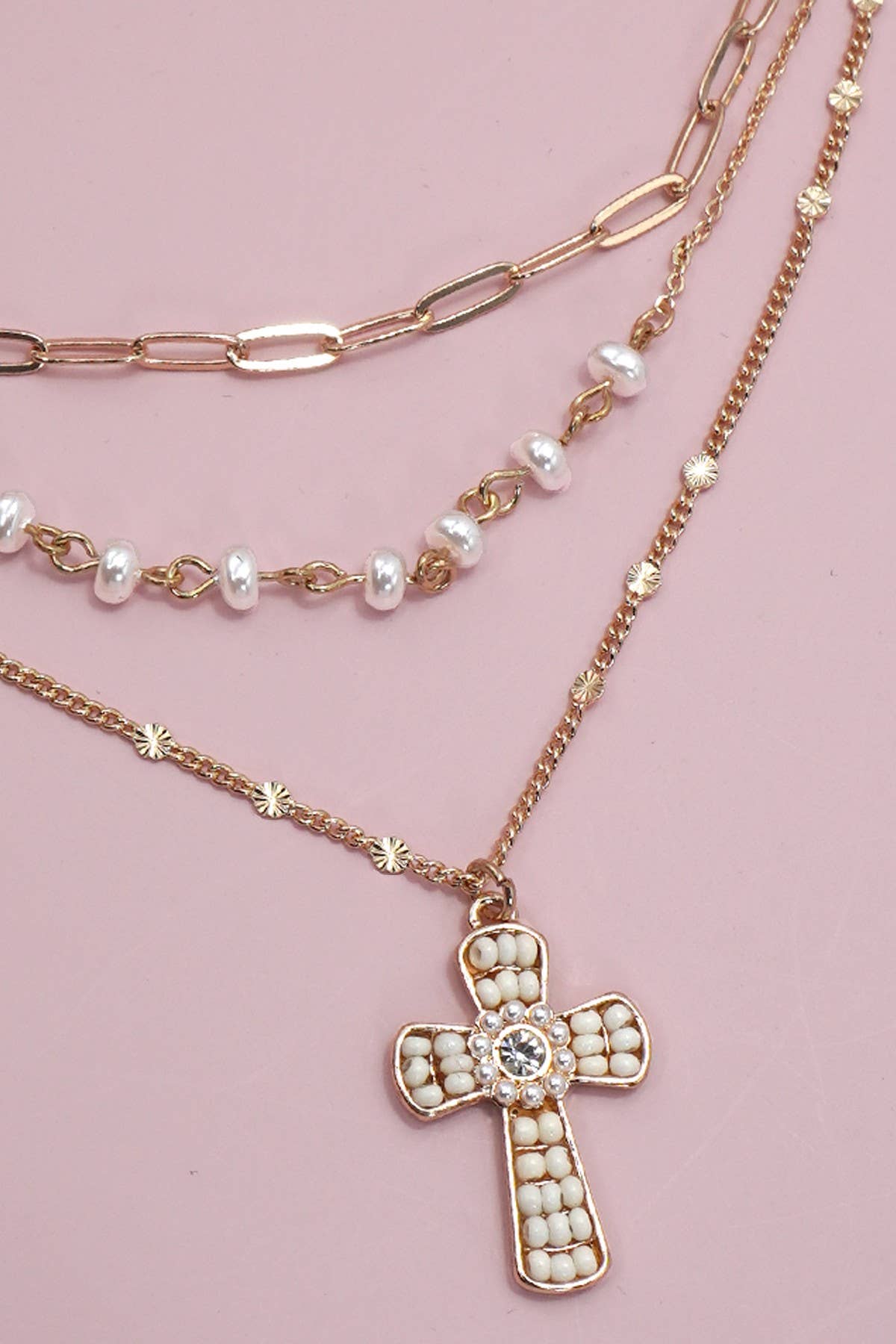 Elevate your accessory game with our Seed Bead Cross Multi-Layer Necklace — a delicate mix of boho-chic style and faith-inspired beauty. Featuring three layered strands with dainty seed beads and a simple cross charm, this gold-plated necklace adds just the right amount of shimmer and meaning to any outfit. Wear it solo for a subtle statement or layer it with your favorite stack for a trend-forward look full of grace and intention.