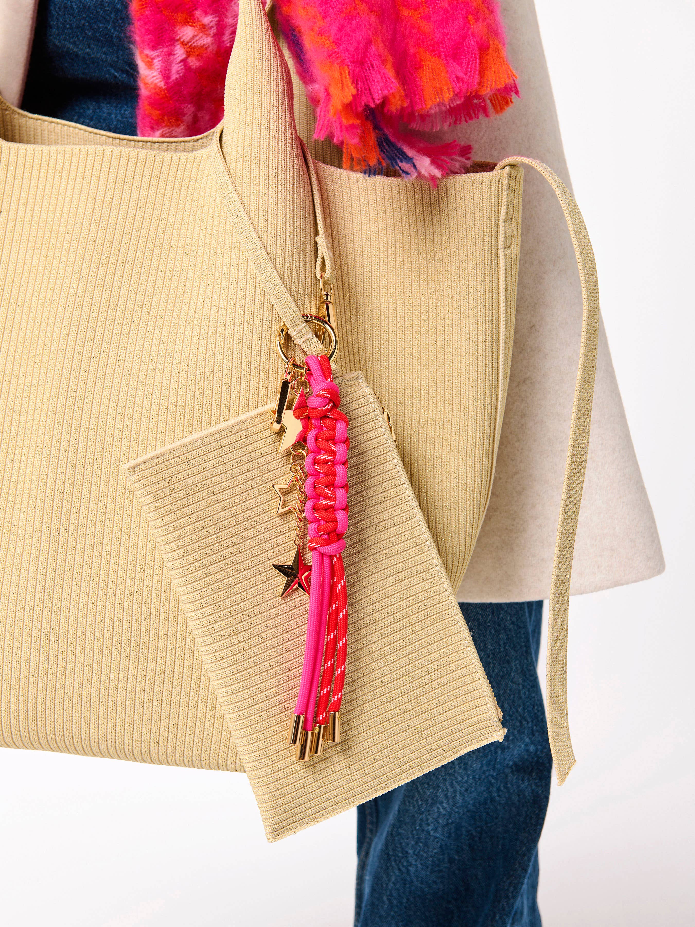 Measures Cord: 10"; Charm: 4.25"Made from polyester and metal with gold hardware, Add a pop of personality to your keys or bag with the Starlet Bag Charm/Key Ring. Featuring a woven paracord knot in bold colors and a trio of gold-tone star charms, this playful accessory brings instant flair wherever it hangs. It’s finished with both a key ring and a clasp hook, so you can clip it onto totes, backpacks, or wherever you need a little sparkle. Durable, lightweight, and totally eye-catching—it’s your everyday essential turned statement piece.