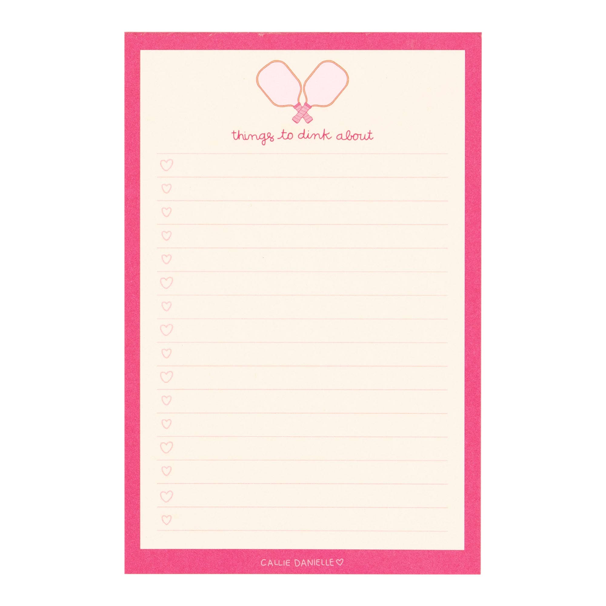 Get ready to dink and think with our Things to Dink About Pickleball Notepad! Perfectly sized at 4x6, each page features lined checklists with heart checkboxes. Whether you're planning your strategy for the next match or jotting down ideas, this notepad is your go-to companion for daily organization. Ideal for any pickleball enthusiast, dink into action with this cute desk accessory!
