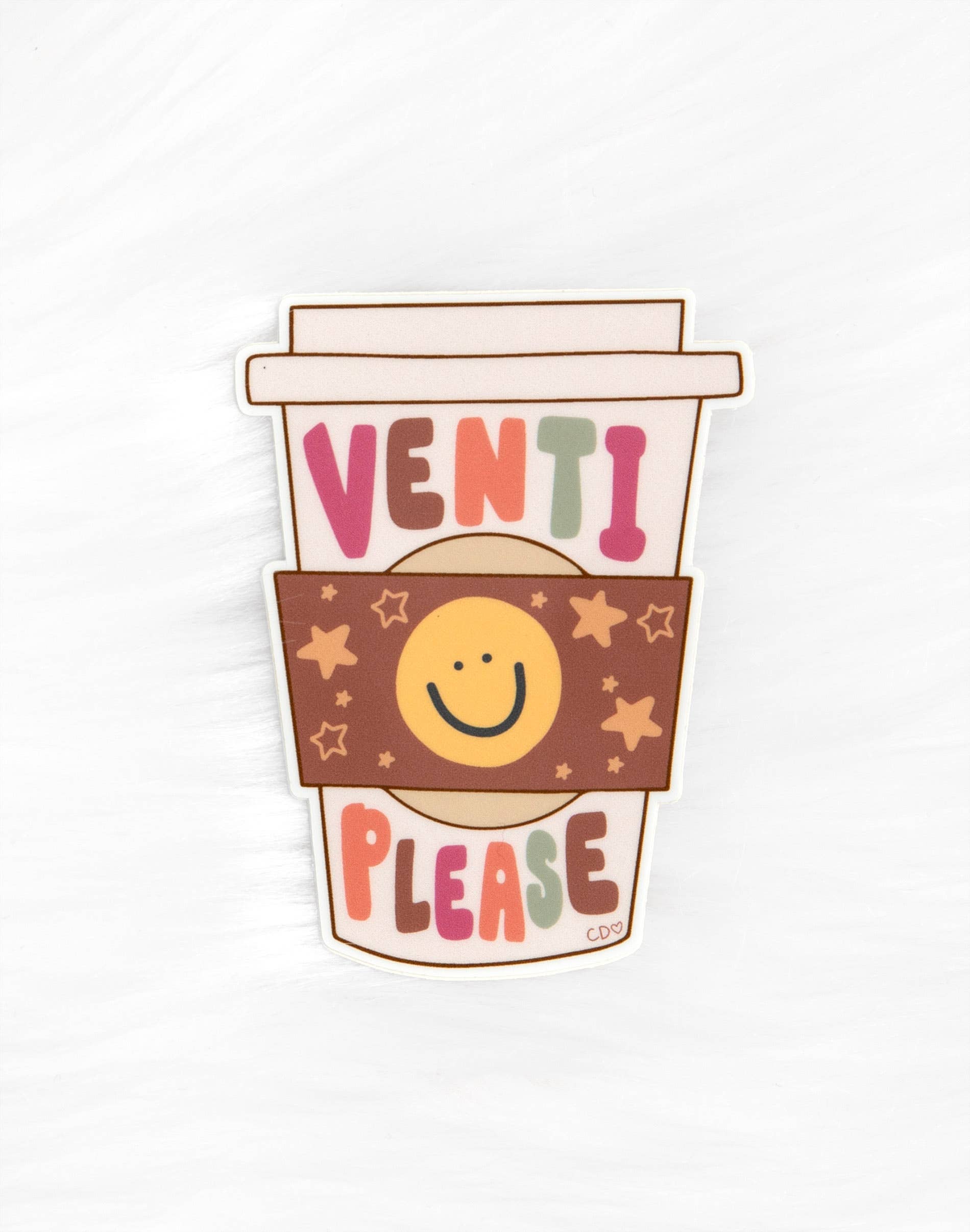This coffee-themed decal is a perfect gift for Starbucks addicts! Anyone can use it to decorate their water bottle, travel mug, laptop, and more! Designed with caffeine lovers in mind, coffee and tea drinkers will be sure to enjoy adding this vinyl sticker to their tablet, notebook or phone.   Size: 3” Water and fade resistant laminated finish