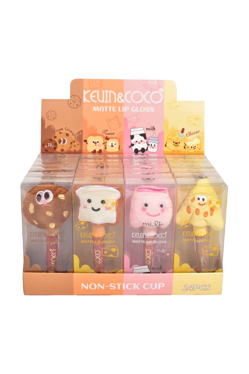Elevate your pout and your mood with the Kevin & Coco Foodie Fun Matte Lip Gloss — where vibrant color meets irresistible cuteness. Featuring a plush, food-inspired cap for that extra dash of personality, this gloss doesn’t just look good — it performs.