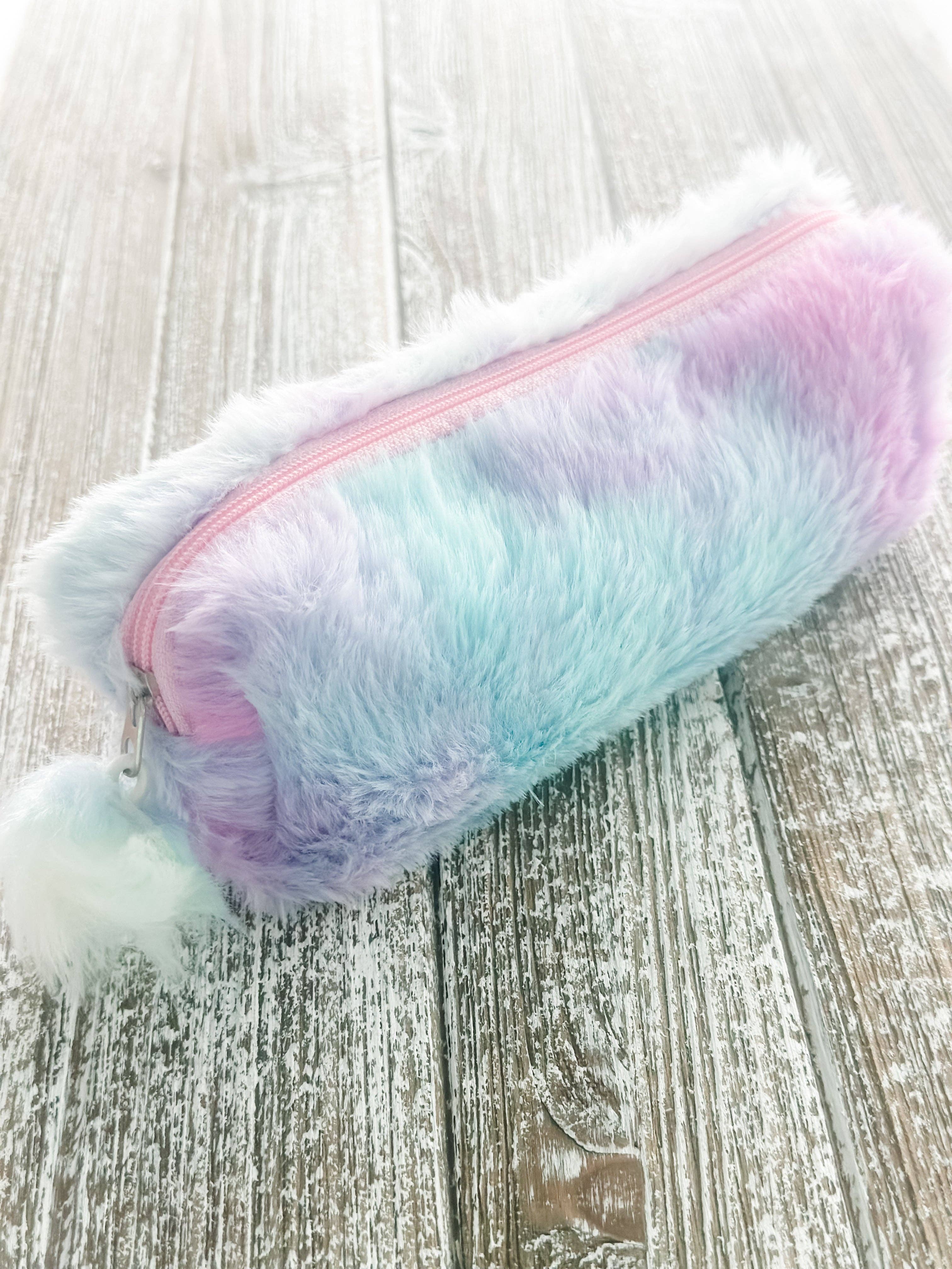 Featuring a trendy tie dye design with rich purple tones, this pouch stands out while still being practical. Made from a soft material and finished with a cute pom-pom zipper, it adds just the right amount of flair to backpacks, lockers, or desks.